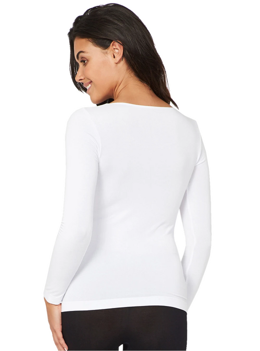 Long Sleeve Waffle Mix V-Neck Top in Fanta Sea