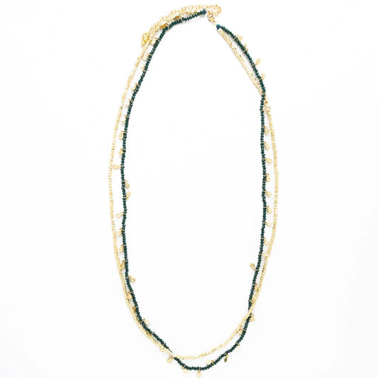 Milly Double Strand Crystal Necklace in Green
