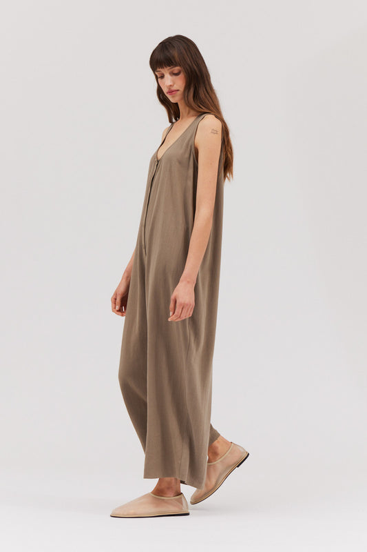 Overfit Button Down Jumpsuit in Olive
