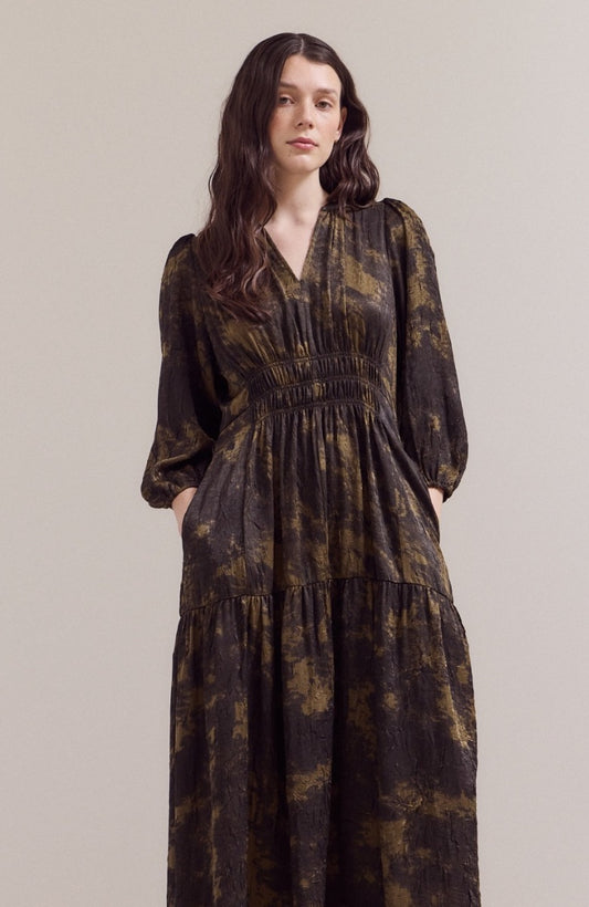 Printed Midi Dress with 3/4 Sleeves in Tapenade