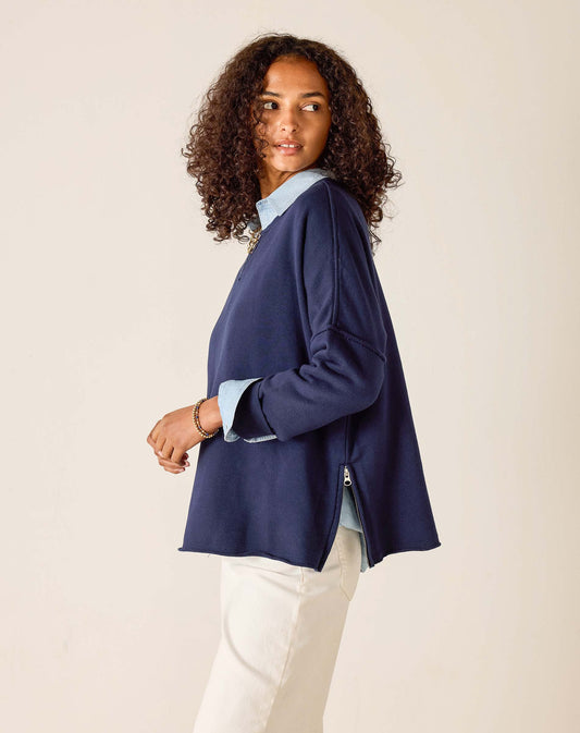 Frenchie Side Zip Crewneck in Cadet Blue