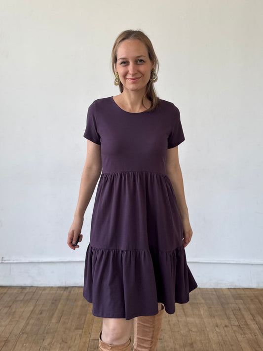Printed Midi Dress with 3/4 Sleeves in Tapenade