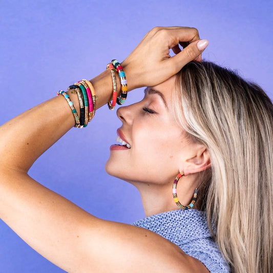 Grace Rainbow Stripes On Black Sequin Stretch Bracelet