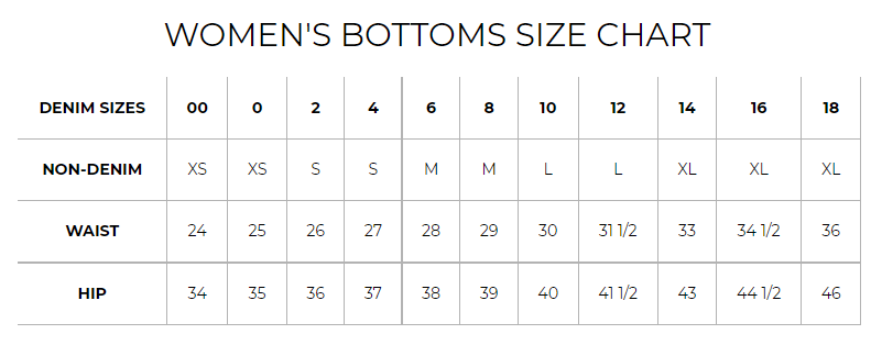 - 33" inseam; 20 1/2" leg opening; 10 1/4" front rise; 15" back rise (size 8)