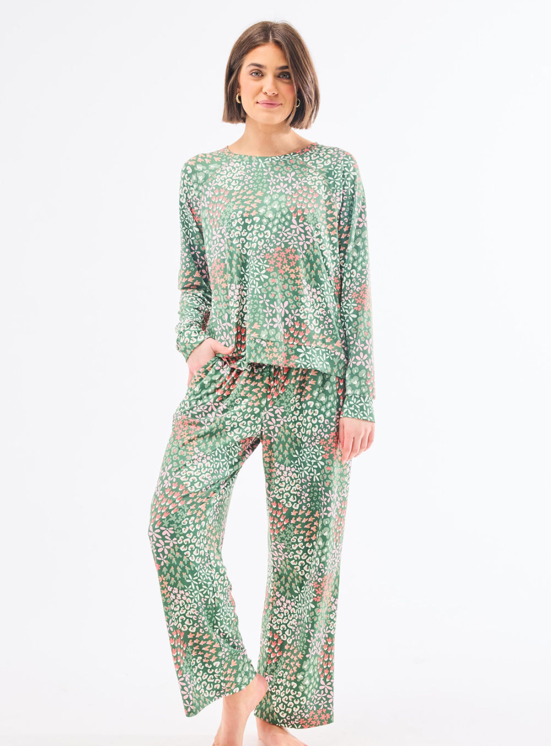 Meet your new favorite lounge set: the Annie Pajamas by Mary Square. Designed with comfort and charm in mind, this buttery-soft duo features a classic crew neckline, long sleeves, and a relaxed-fit pant with an elastic waistband and adjustable drawstring. Functional pockets and a flattering 27" inseam make it as practical as it is cozy.