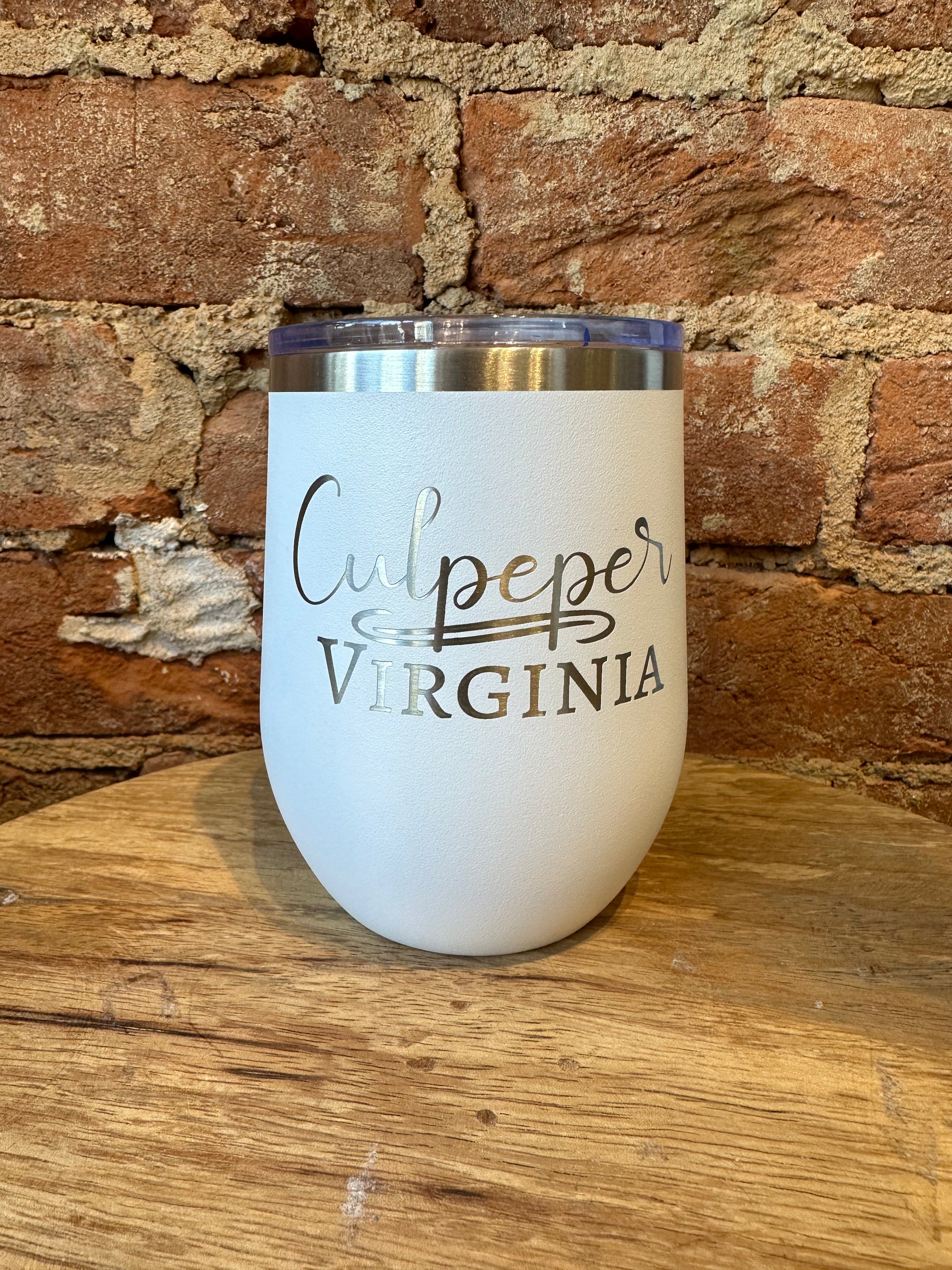 Experience wine like never before with the Culpeper Stemless Insulated Wine Glass. This elegant glass features a custom map of Culpeper, making it the perfect addition to any wine lover's collection. Keep your wine at the perfect temperature with its insulated design. Cheers to a unique and stylish drinking experience.
