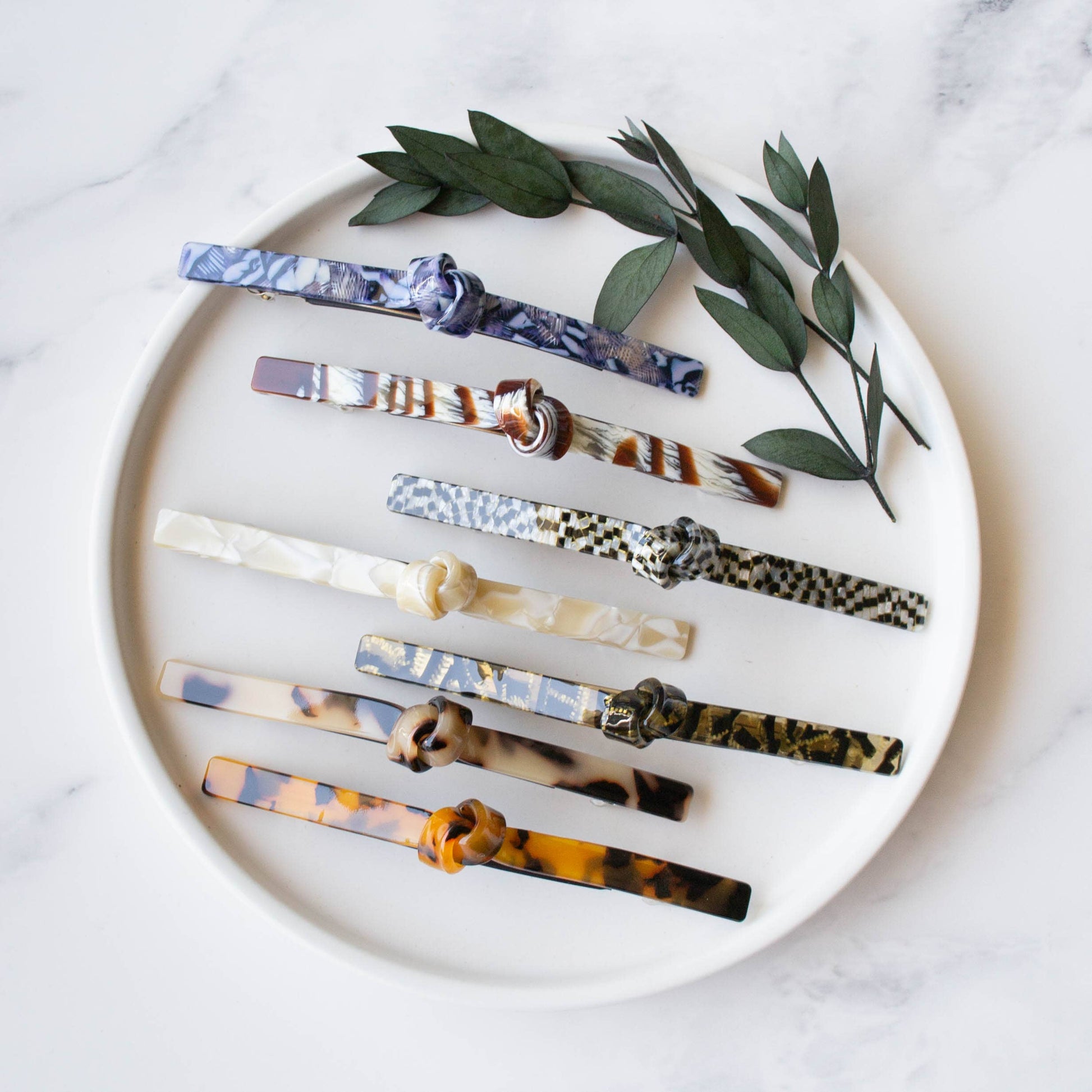 This 4.5-inch hair accessory is crafted from 100% cellulose acetate—a plant-based, biodegradable material made from processed wood pulp. Known for being non-toxic and non-irritating, acetate is gentle on your hair while offering impressive durability.