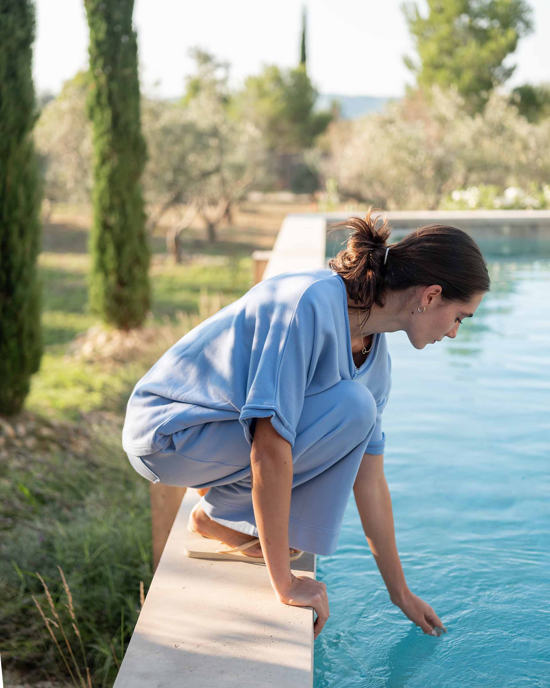 • French terry fabric blend (cotton, modal, and polyester)