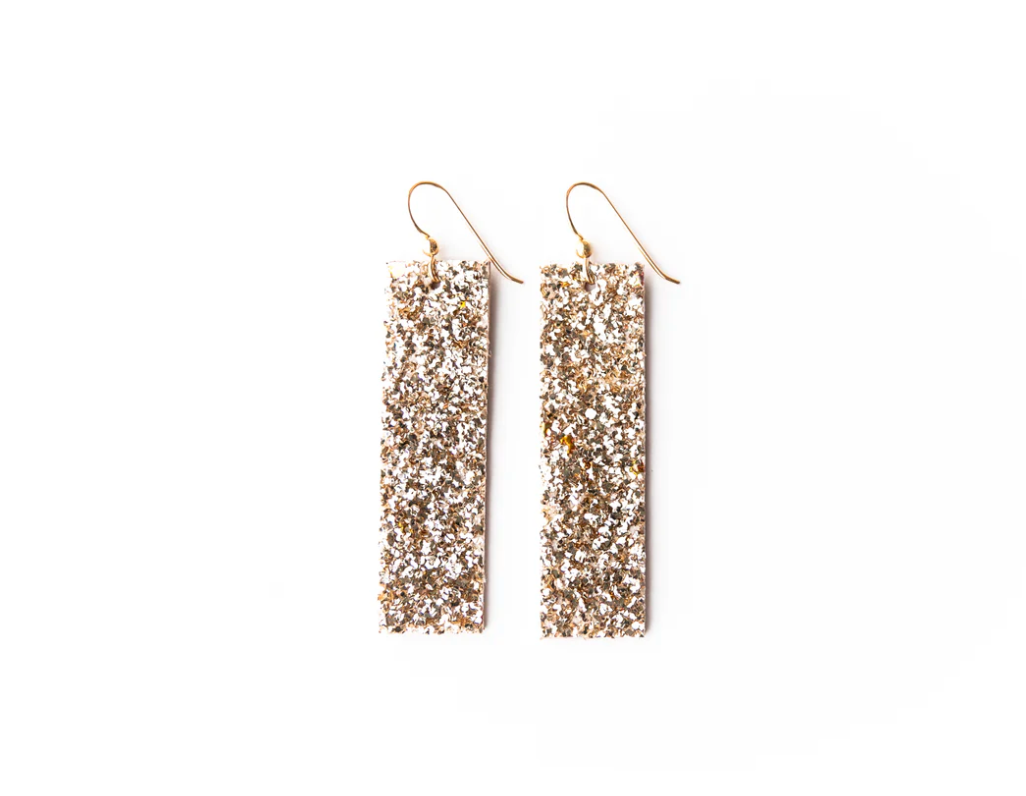 Gold Sparkle Leather Earrings - Four Corners