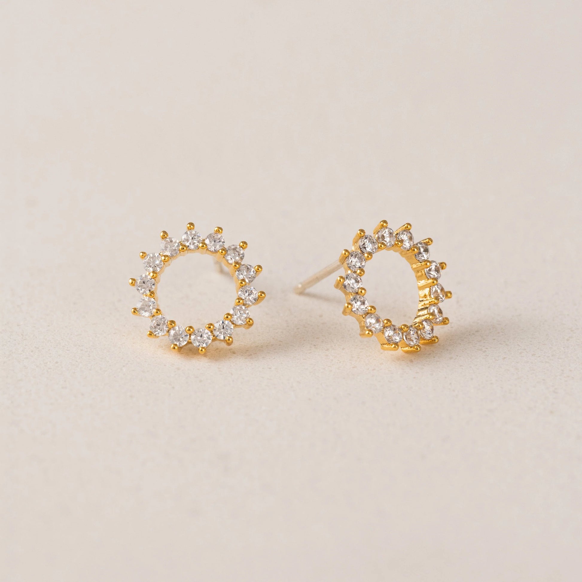 Shine a little brighter with the Halo Studs. Inspired by sunlight and designed to dazzle, these best-selling earrings add the perfect touch of sparkle to any look. Their curved, open-circle design catches the light beautifully, making them just as stunning for everyday wear as they are for a night out.