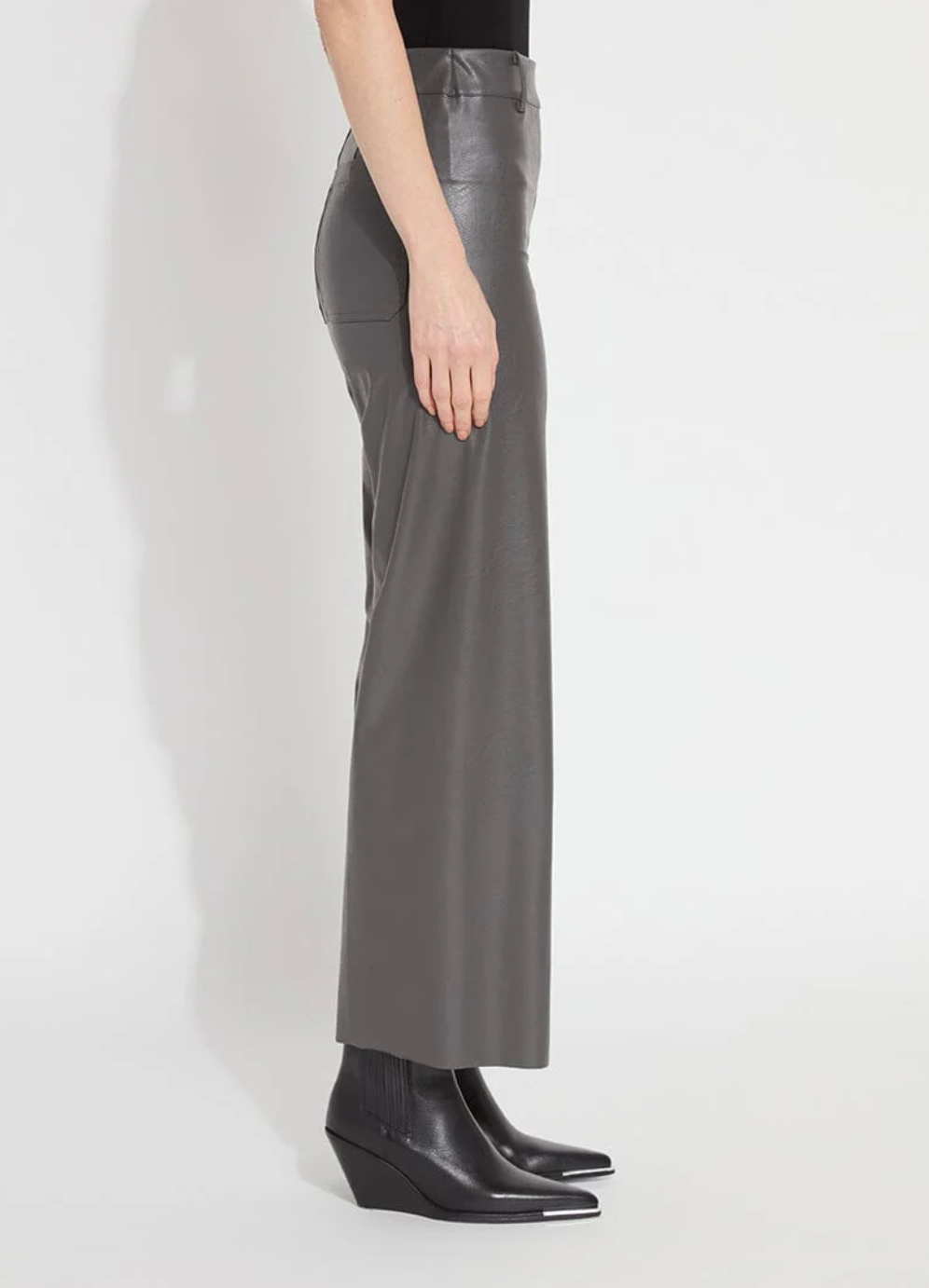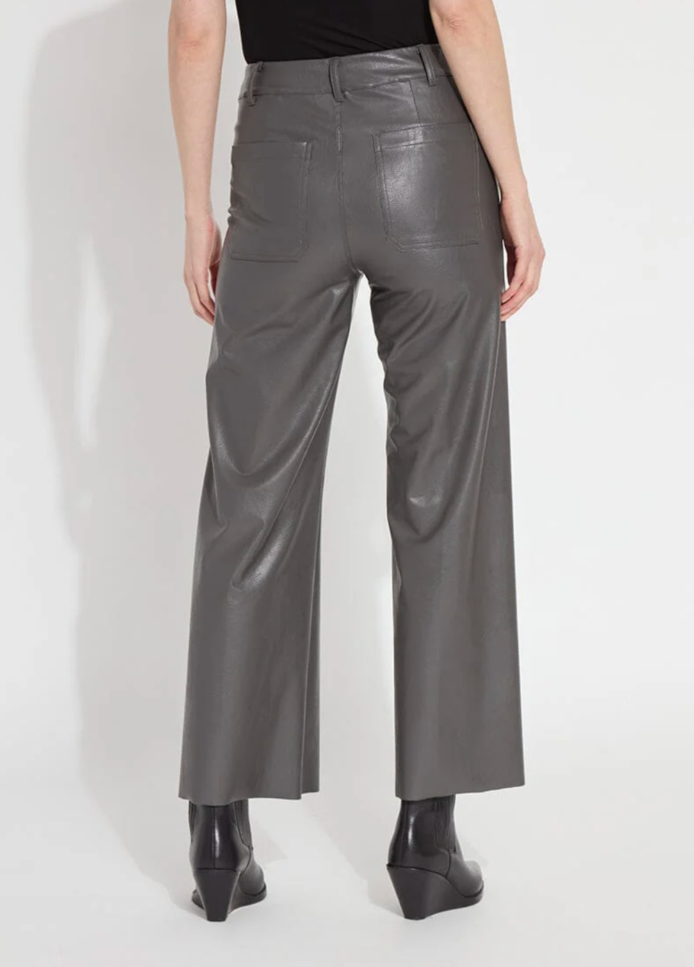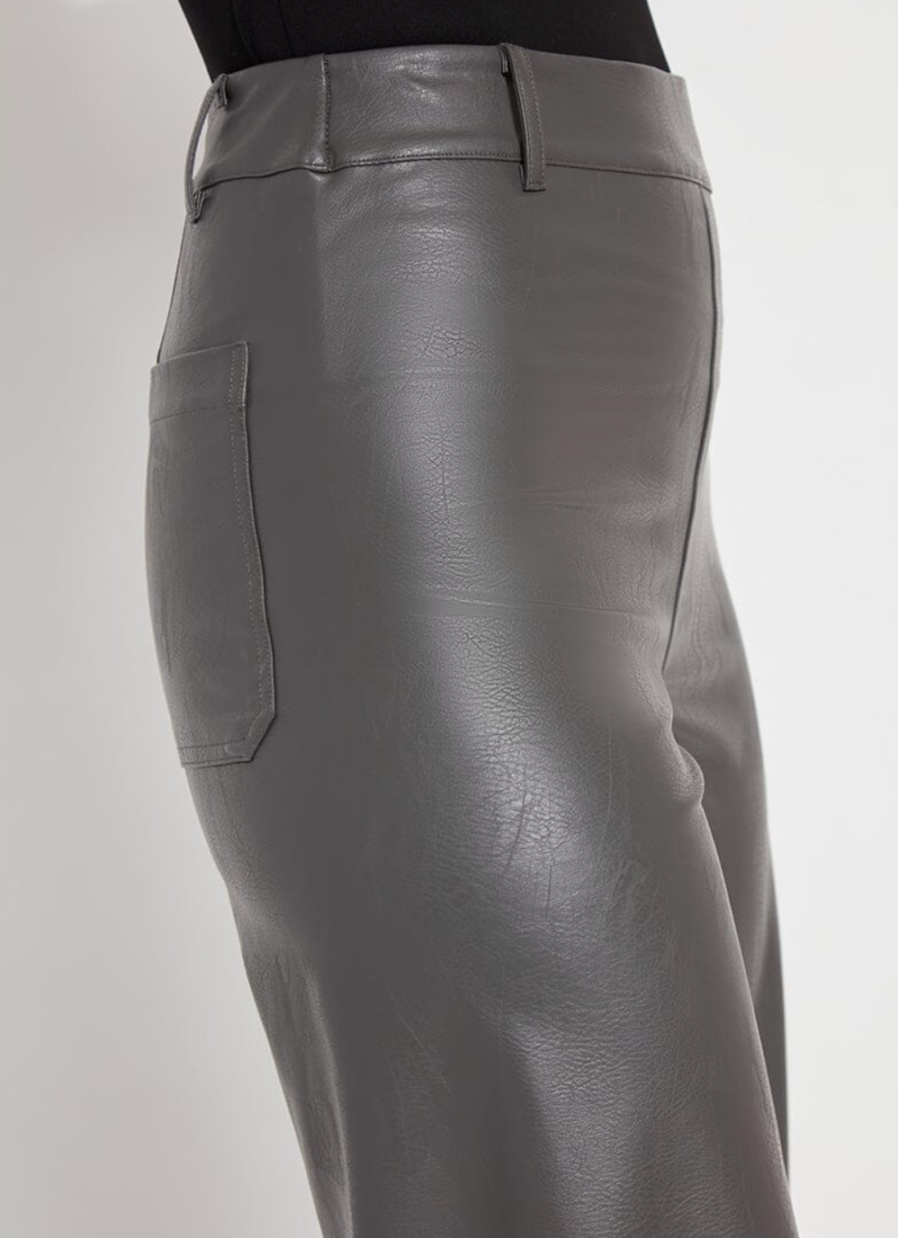 The Hi Waist Vegan Leather Wide Leg pant is fitted at the waist and hip before falling into a wide, ankle-length leg. Made from 4-way stretch Textured Vegan Leather, these wide-legged pants feature a concealed patented waistband, beltloops, patch pockets and no side seam for a slimming look. A raw-edge hem makes them simple to shorten.