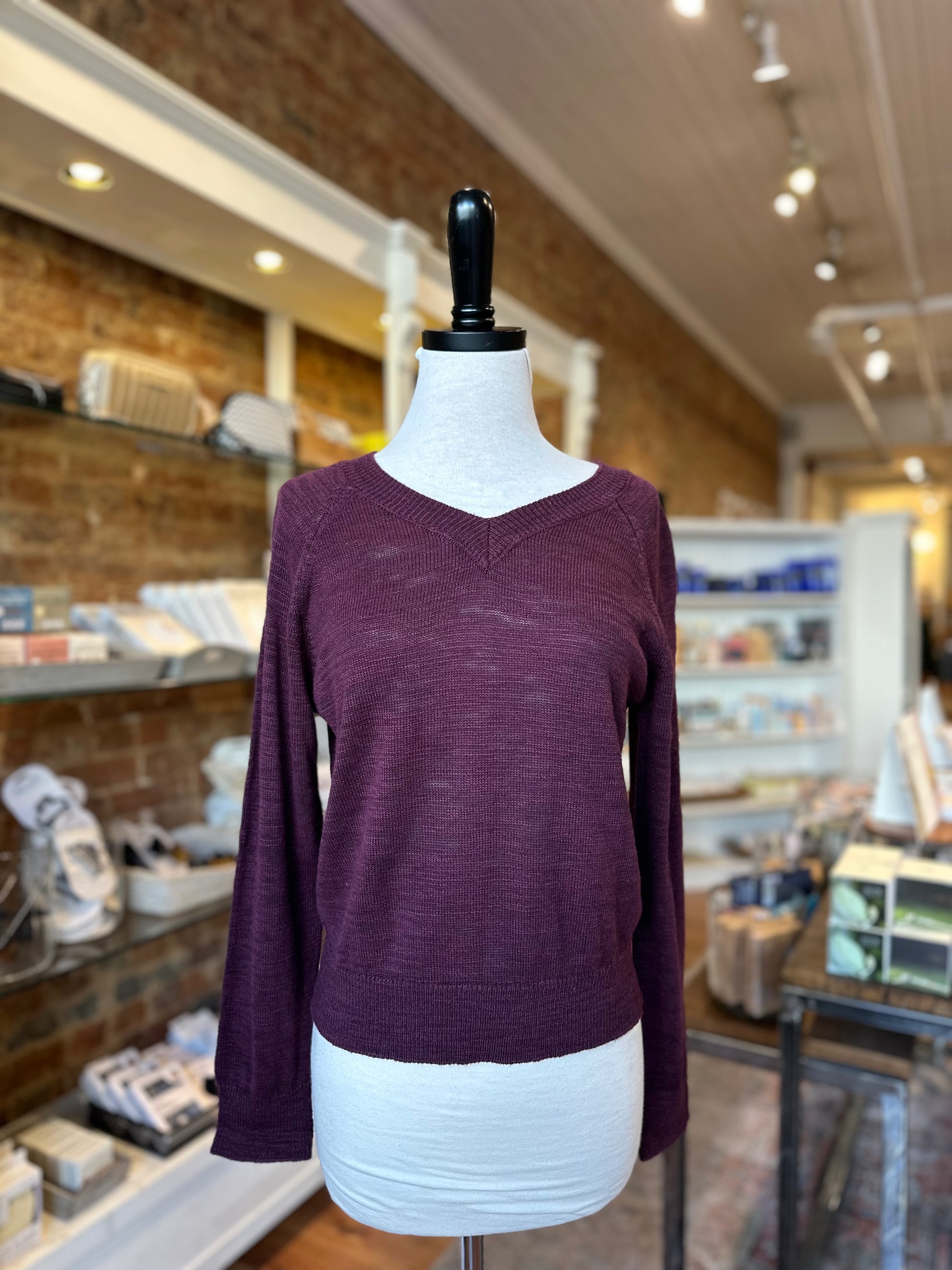 Long Sleeve Wide Neck Sweater Top in Warm Wine