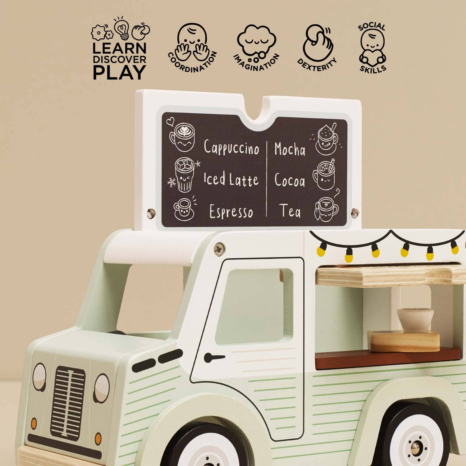 Coffee, anyone? This adorable wooden café van is serving up smiles on the go. With a barista window, menu board, and plenty of imaginative charm, it’s perfect for pretend play that’s full of creativity and connection.