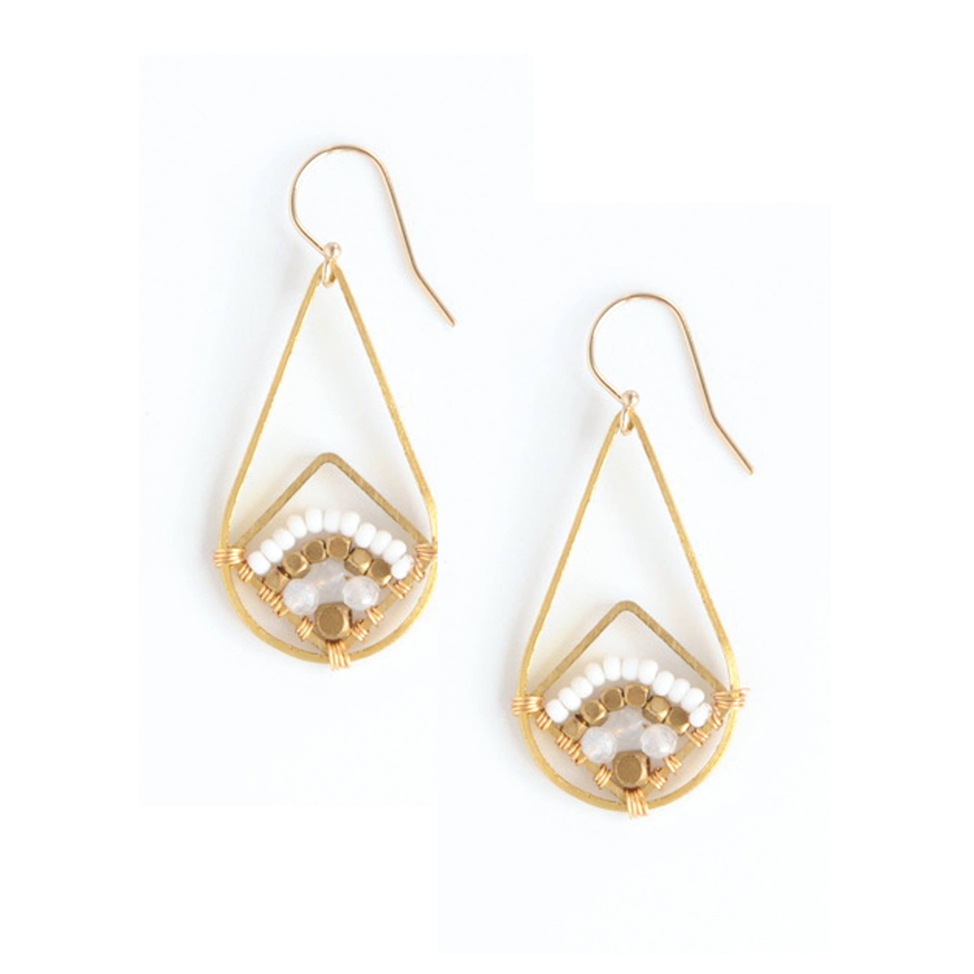 A modern take on artisan craftsmanship, these Mosaic Earrings bring together soft white accents and warm brass for an effortless, everyday look. Hand-assembled with reconstituted stone and brass beads, each pair is lightweight yet eye-catching — the kind of piece that goes from jeans-and-tee casual to an elevated evening out. Finished with gold-filled ear wires for comfortable, all-day wear.