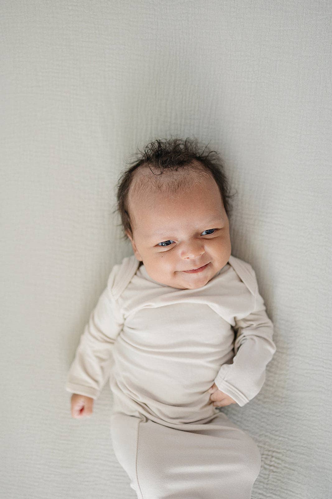 Wrap your little one in softness with Marlowe & Co’s Knotted Gown. Made from a buttery blend of 95% viscose from bamboo and 5% spandex, this gown is designed to keep baby cozy and comfortable in every season. Bamboo fabric is one of the softest, most eco-friendly fabric choices, offering just the right amount of stretch while staying gentle on delicate skin.