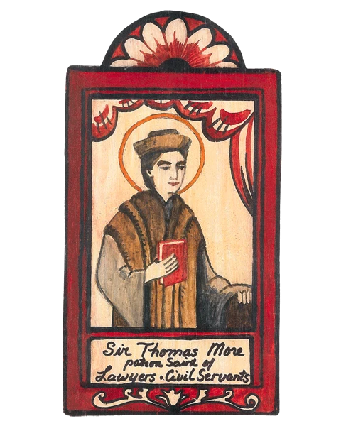 Sir Thomas More was Lord Chancellor under Henry VIII. He stayed true to the laws of England as well as God's law. King Henry regrettably had him beheaded because he had refused to sanction Henry's divorce. This is when England split from the church in Rome and became the Church of England. This was so King Henry could divorce and marry another woman who might bare him a son. King Henry did have a sickly son who died. Thus, his daughter Elizabeth became the first Queen of England. Thomas More was a man of great integrity, staying true to his beliefs at all costs — a strong reminder and invocation for the complex world of lawyers today.