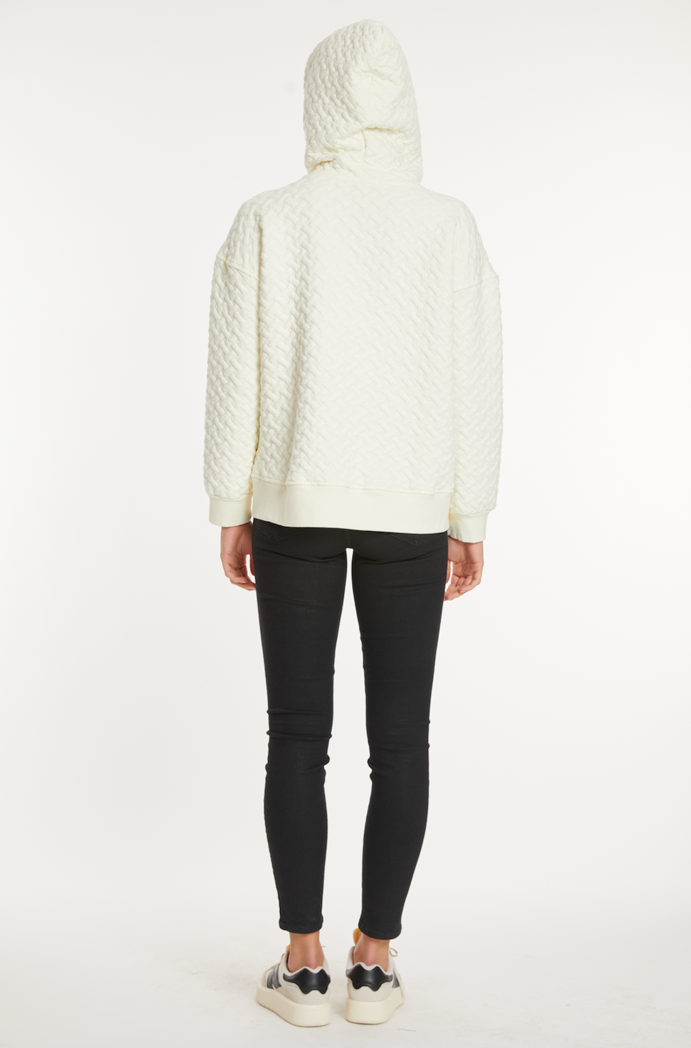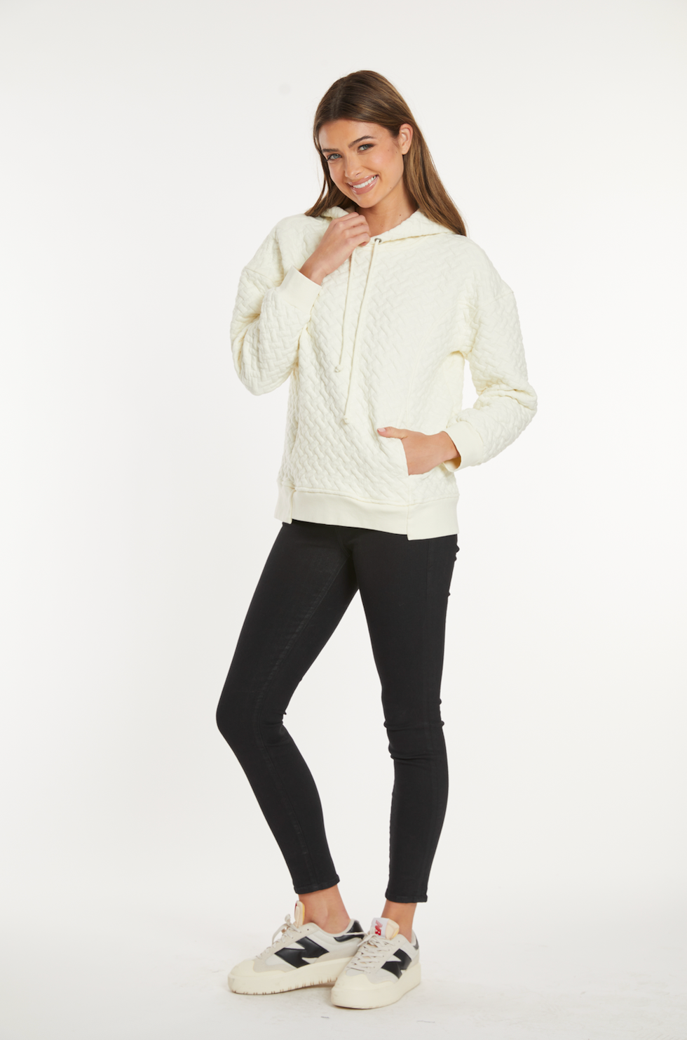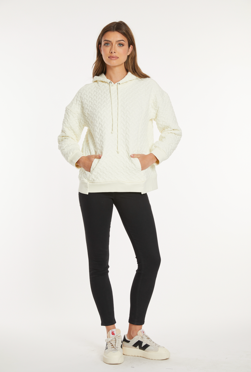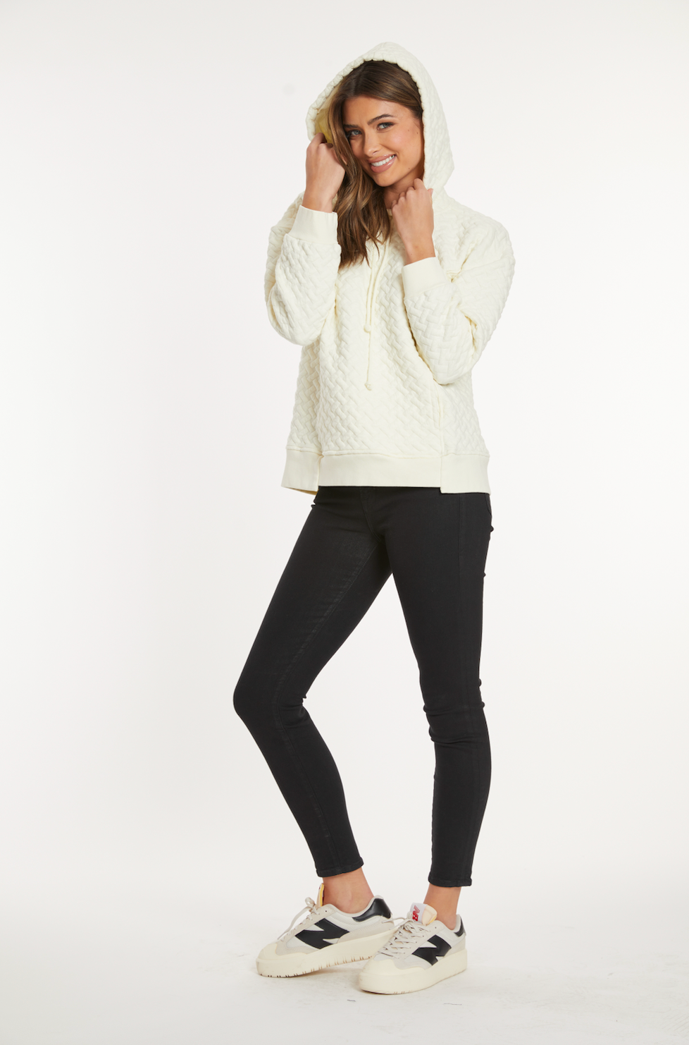 Quilted Long Sleeve Oversize Step Hem Hoodie in Ivory
