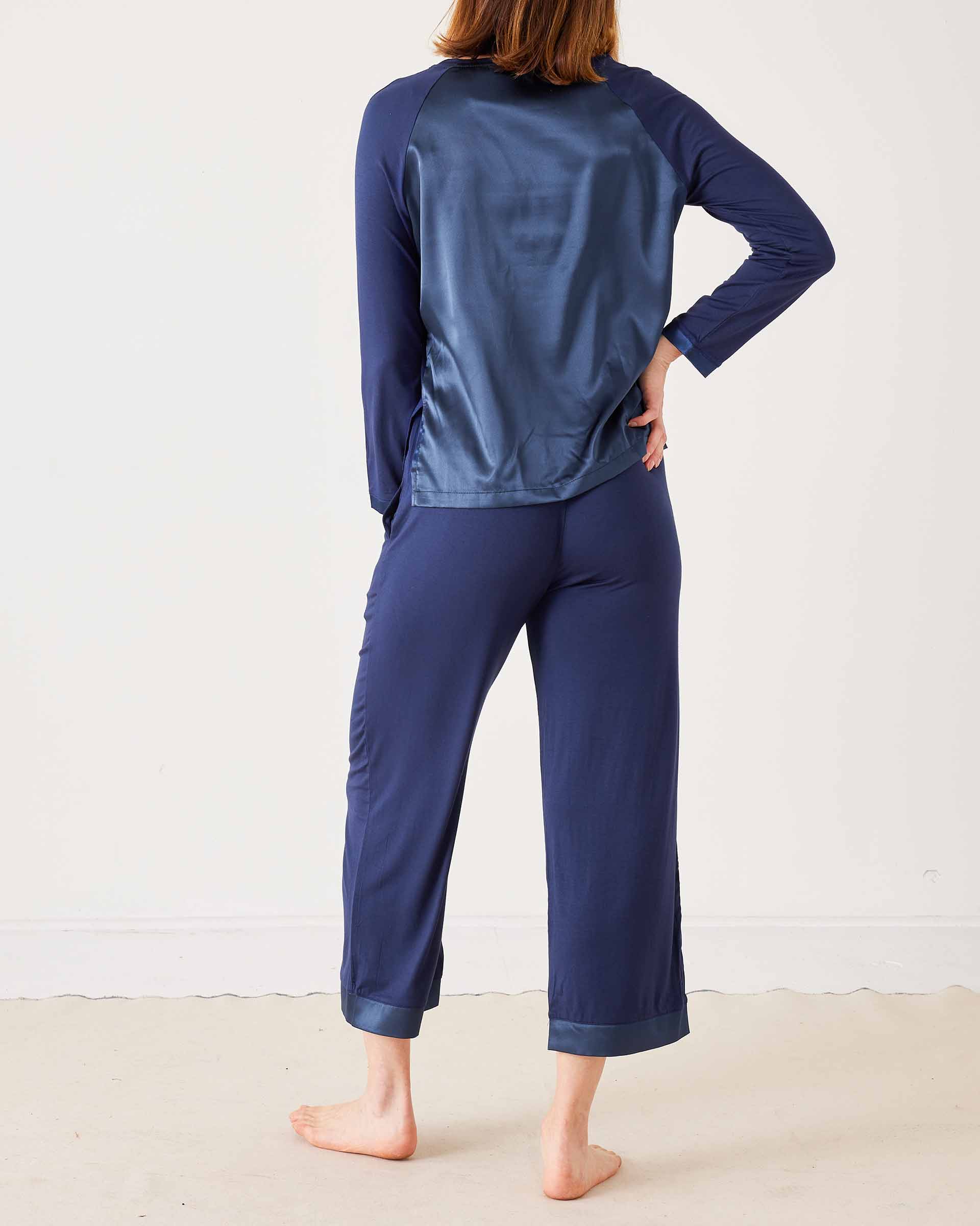 Meet the Satin Sailor Modal Pajama Set — a fresh take on our beloved satin style, now reimagined in buttery-soft modal. The top features sleek satin details on the back for fluid movement, while the wide-leg pant with an elastic waistband makes comfort the captain of your night. Slip into this silky-smooth fabric and drift off into effortless slumber.