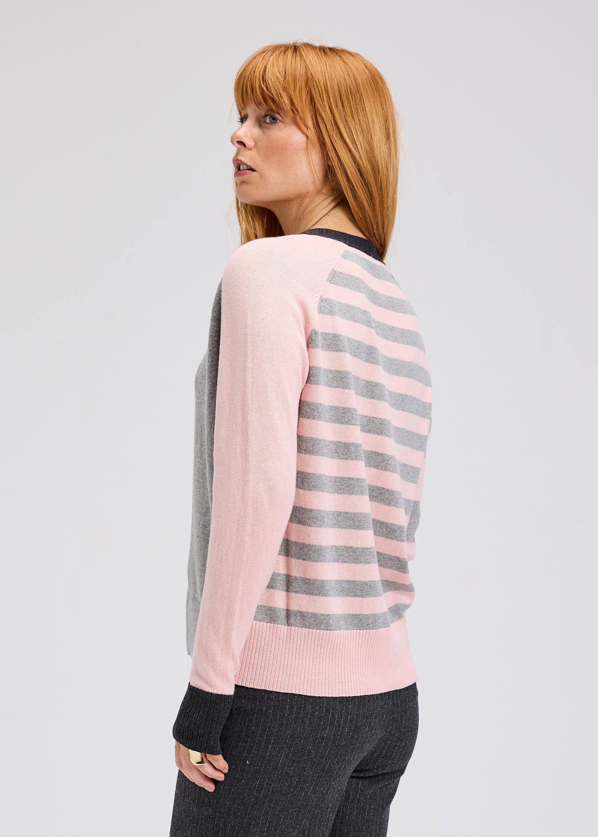 The Zaket & Plover Split Cardi in Powder takes a classic cardigan silhouette and gives it a modern, playful update. Featuring a timeless button-front design and a relaxed fit, this soft knit cardigan gets a fun twist with striped sleeves and a bold back detail that set it apart from the ordinary.
