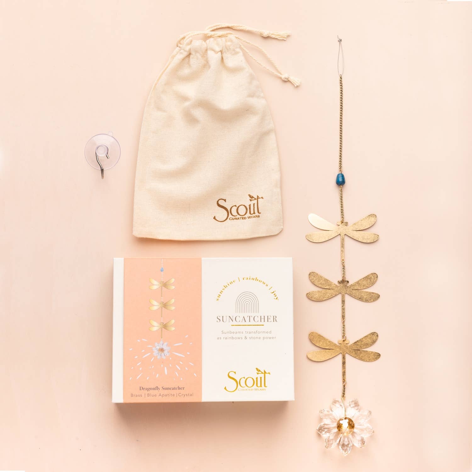 - Materials: Brass with gold plating, crystal, semi-precious stone and suction cup with a metal hook.